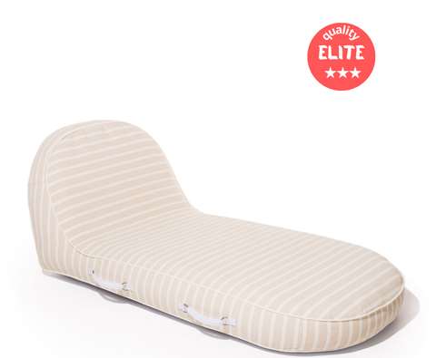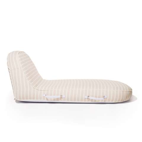 The inflatable Pool Lounger combines timeless luxury with durability. add to your pool decor. The pool lounger is designed for long-term water fun: stainless steel handles, a leak-resistant PVC inner layer and a Pleasuretex cover for years of worry-free bobbing on your pool.