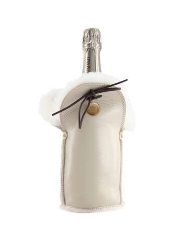 Discover the kywie passive champagne cooler, handcrafted from 100% natural sheepskin. Its exeptional wool insulation and airlock cord keep your champagne and wine chilled for hours. A unique gift, a funtional eye-catcher on any table and around any pool.
