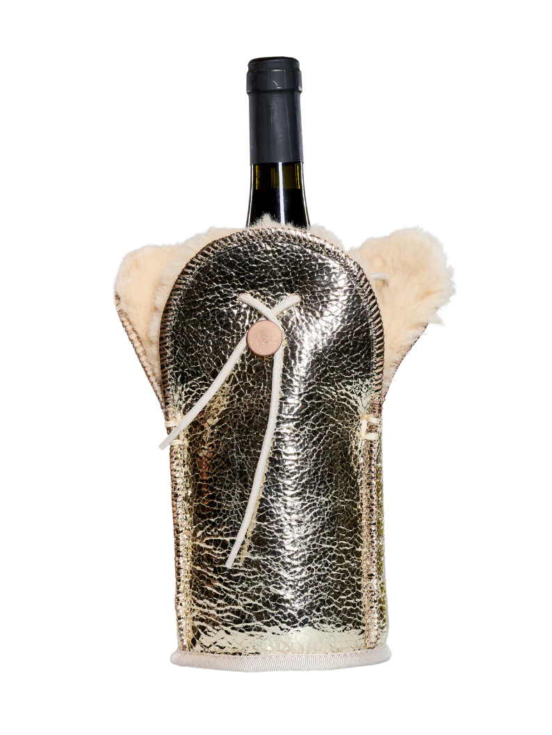 Discover the kywie passive champagne cooler, handcrafted from 100% natural sheepskin. Its exeptional wool insulation and airlock cord keep your champagne and wine chilled for hours. A unique gift, a funtional eye-catcher on any table and around any pool.