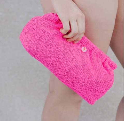 This casual cool crinkle clutch adds a unique twist to any swim outfit.