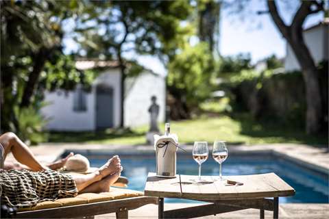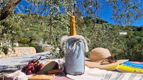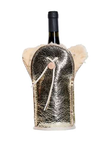 Discover the kywie passive champagne cooler, handcrafted from 100% natural sheepskin. Its exeptional wool insulation and airlock cord keep your champagne and wine chilled for hours. A unique gift, a funtional eye-catcher on any table and around any pool.
