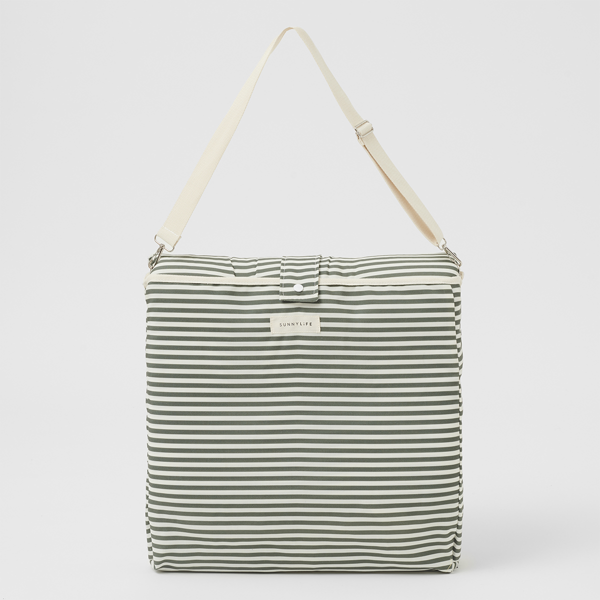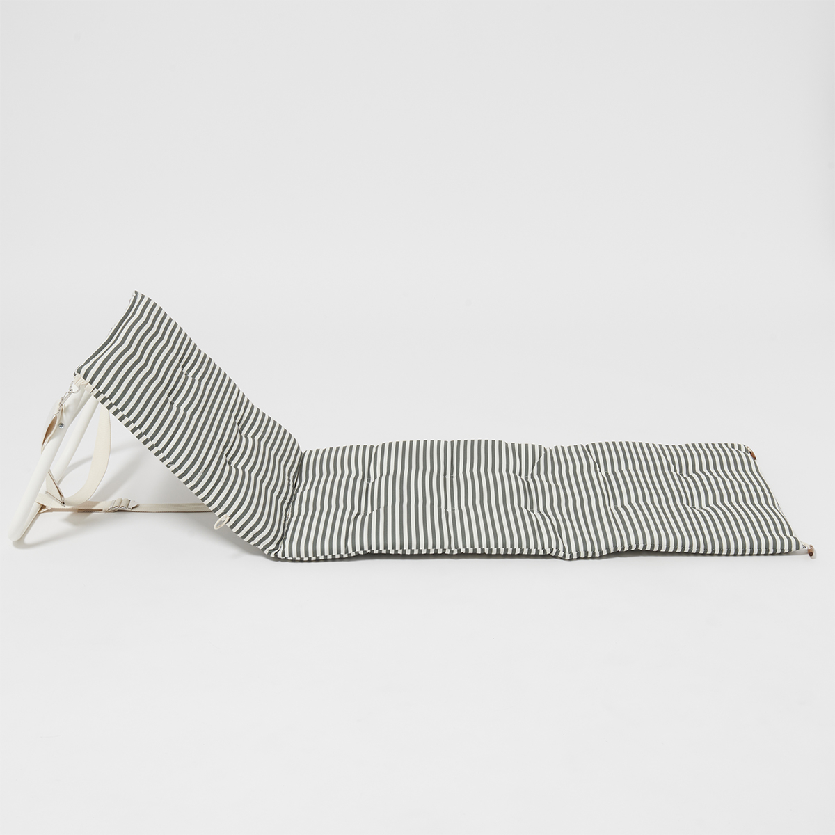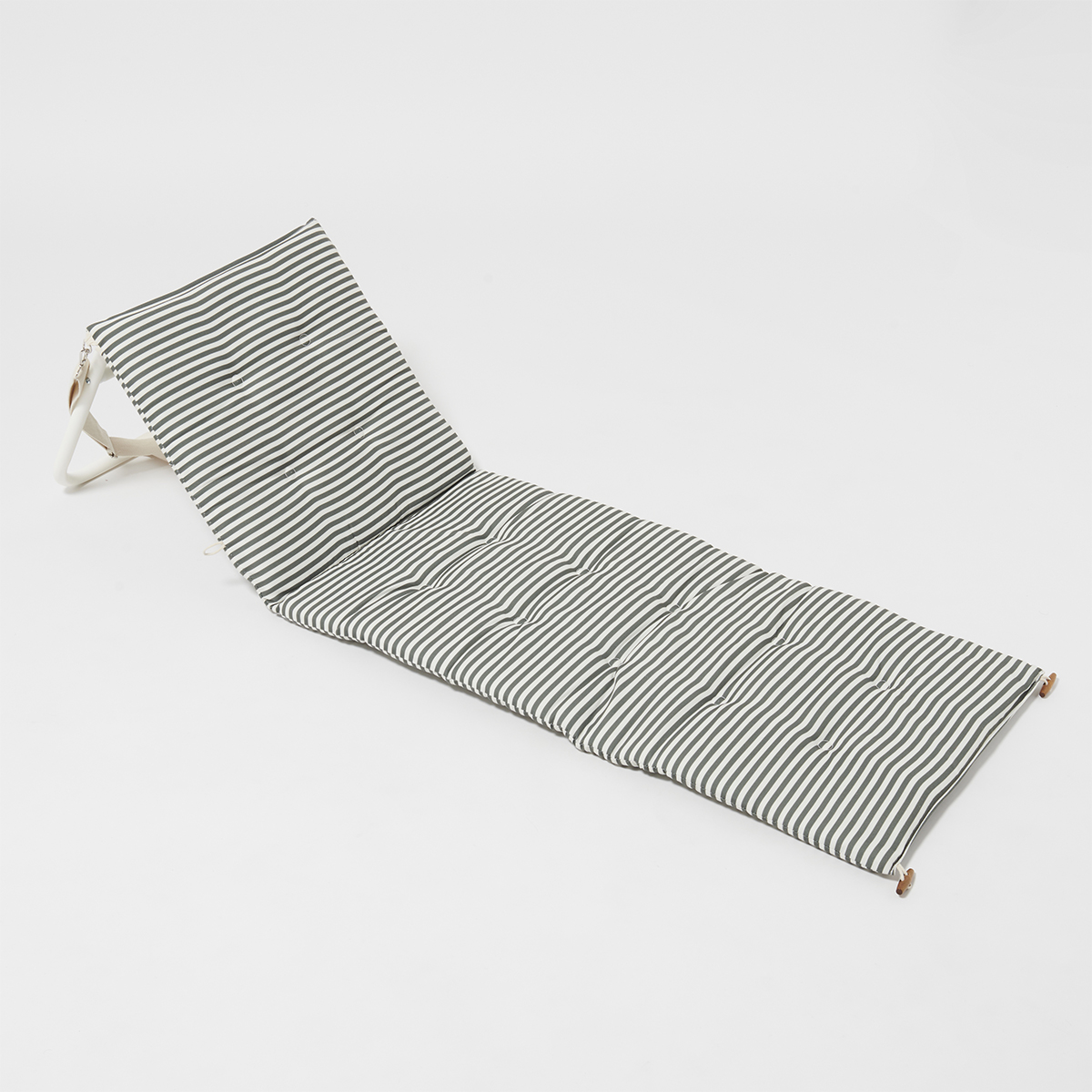 Lean back in comfort with Sunnylife's adjustable beach chair. Made of durable, water- and color-resistant cotton canvas and featuring an adjustable backrest for added comfort. Relaxing on the beach or beside your pool has never been easier. The vintage look completes the picture. Enjoy your surroundings in style with the warm olive and cream maxi stripe print.