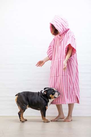 The Naram Adult Poncho is made of combed cotton (385 gram quality), which is extra thick, super soft and super absorbent.