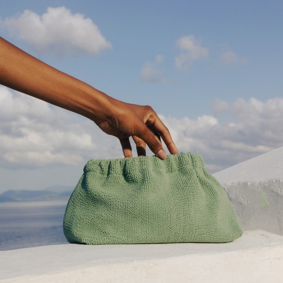 Deze casual coole crinkle clutch geeft een unieke twist aan elke zwemoutfit.
