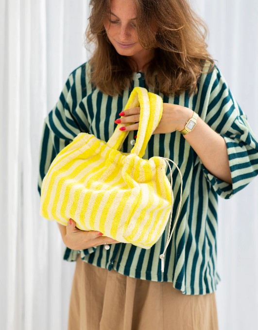 De handbag van Bongusta is perfect om je zomerse outfit af te werken. De handbag is gemaakt in zachte badstof. Het 100% gekamd katoen met een 600 grams weving zorgt voor een luxe uitstraling.