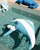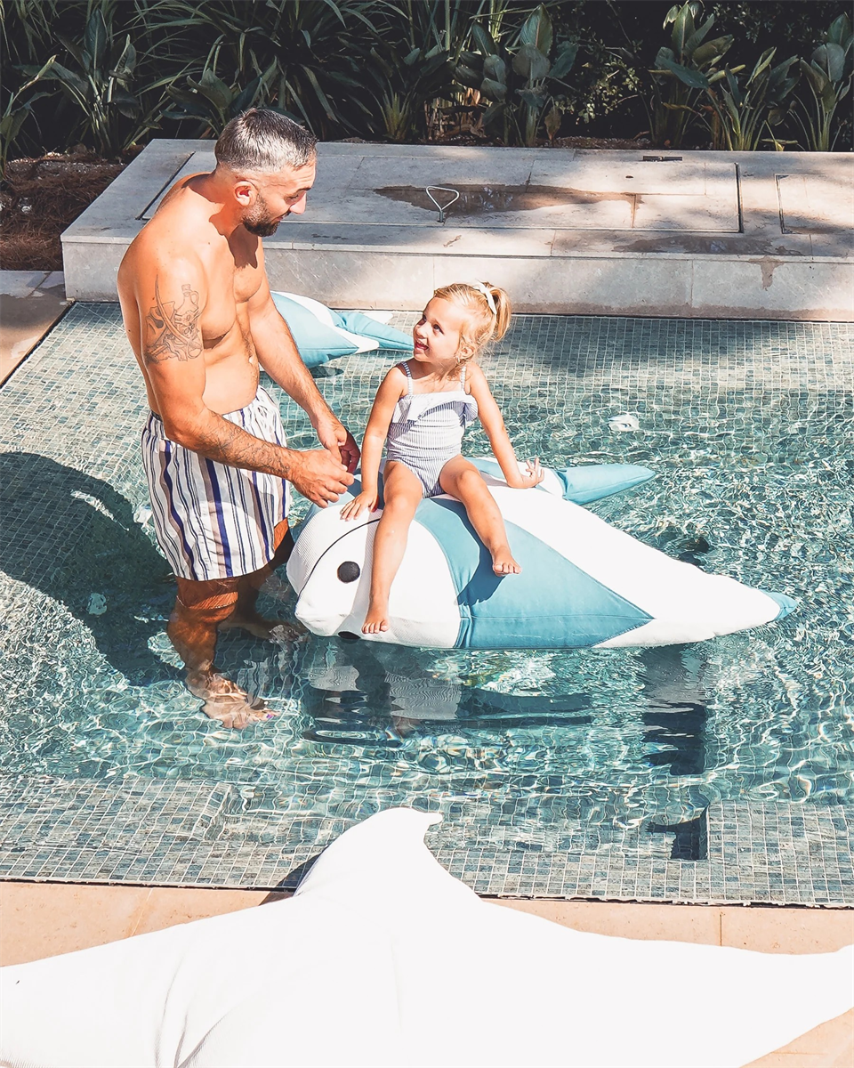 De visvorm maakt het mogelijk om comfortabel te zitten of te liggen, met een stabiel drijfvermogen.