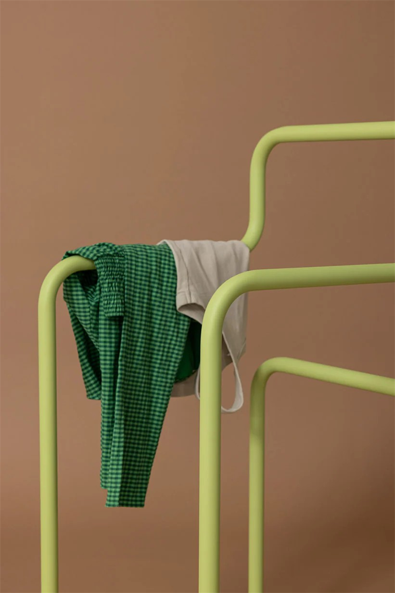 JAMES is gemaakt van één stalen buis en lijkt qua vorm op een stoel. Dit elegante kledingrek integreert naadloos in hedendaagse ruimtes en biedt alle nodige functies om kleding stijlvol op te hangen. Met zijn slanke ontwerp en praktische structuur brengt hij orde rond je zwembad.