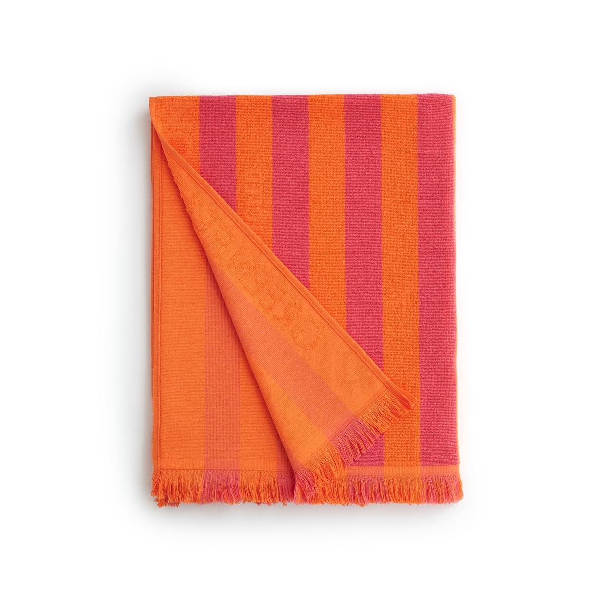 Pimp je zwemdagen met de Delmor Ochre Strandhanddoek van Green Petition. Een stijlvolle, milieuvriendelijke optie met prachtige kleuren en nostalgische strepen.