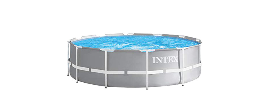 Het Intex prism frame opzetzwembad is lichtgrijs van kleur. De buizen van het frame zijn wit van kleur.