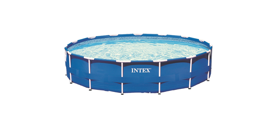 Het Intex metal frame opzetzwembad is blauw van kleur. De buizen van het frame zijn wit.