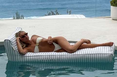 Relax in stijl op je zwembad met deze drijvende lounger met textiel bekleding voor buitengebruik.