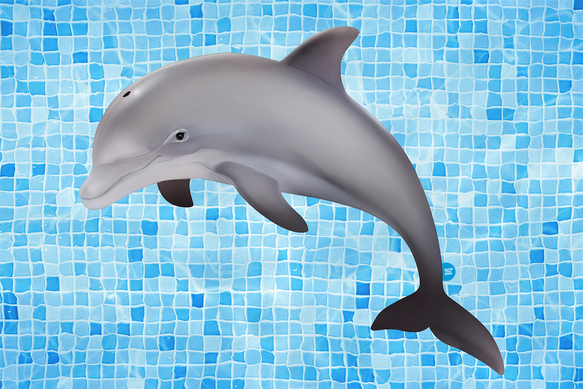 Geef je zwembad een nieuwe look met de dolfijn pool tattoo.