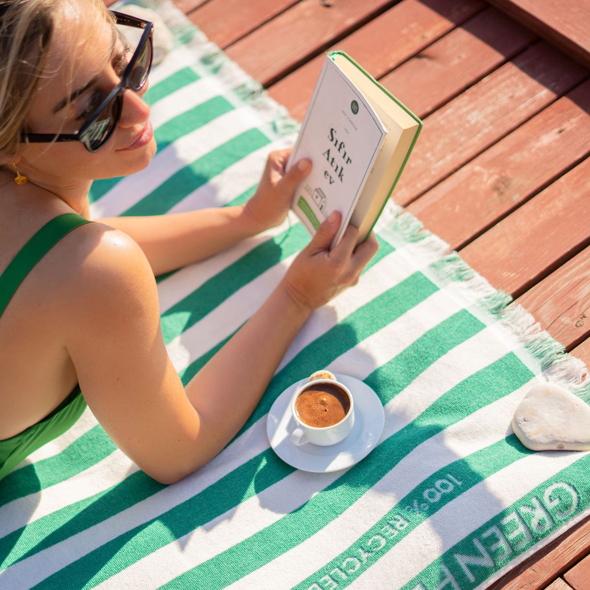 De strandhanddoeken zijn gemaakt van 100% gerecycled materiaal, waaronder 50% gerecycled katoen, en vrij van schadelijke chemicaliën of kleurstoffen, is het een slimme, duurzame keuze.