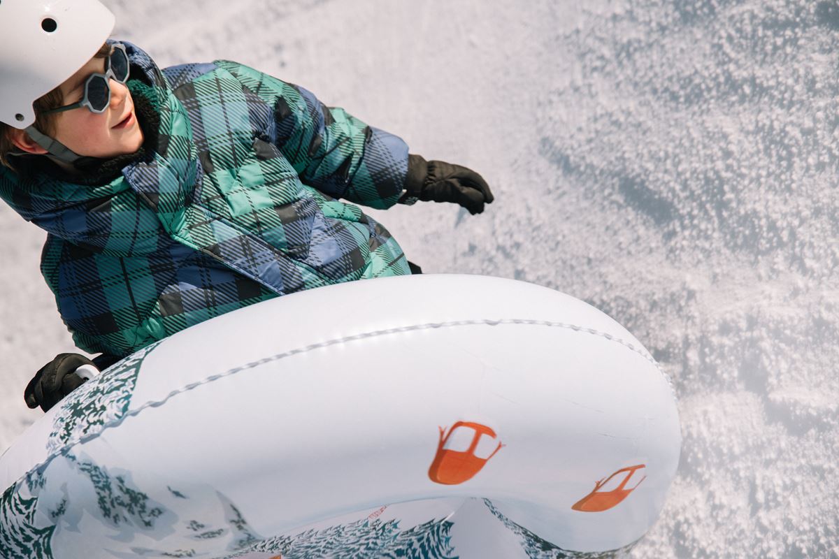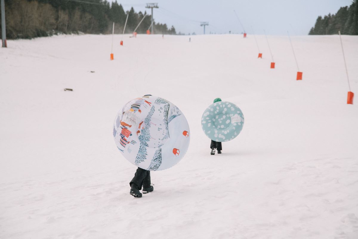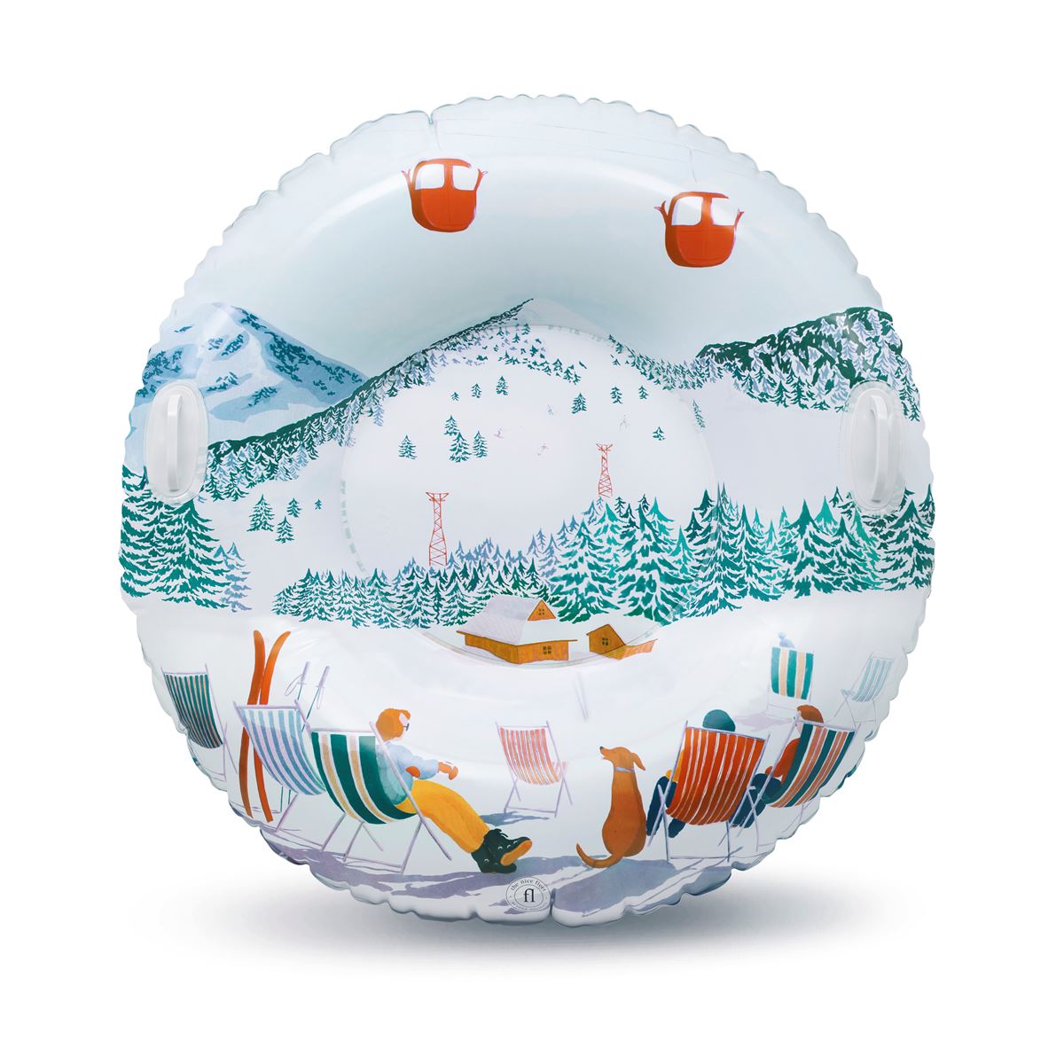 Grote ronde opblaasbare slee met een diameter van 110 cm. Bedrukt met sfeervolle aquarel wintertaferelen. Ideaal voor plezier in de bergen. Praktisch want past in je tas en is in een paar minuten opgeblazen.